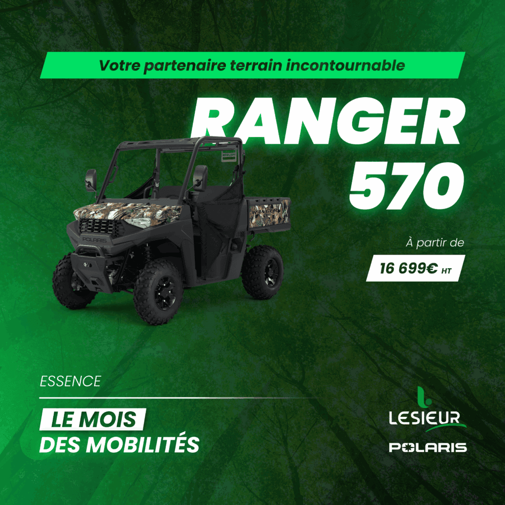 Le Polaris Ranger SP 570 associe puissance et utilité avec son moteur 567 cc, sa benne de 227 kg, sa capacité de traction de 680 kg, une garde au sol de près de 28 cm et sa direction assistée électronique. Idéal pour les charges lourdes, la manutention exigeante ou les trajets hors-route dans des conditions difficiles.