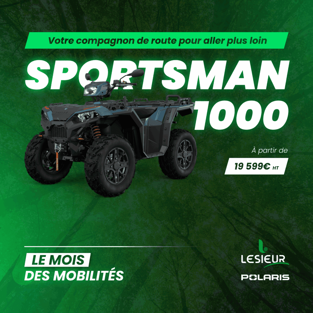 Le Polaris Sportsman 1000 vous embarque partout avec son moteur bicylindre de 952 cc, sa transmission intégrale à la demande, et une garde au sol de 29-30 cm. Il affiche une tenue de route sans compromis grâce à ses suspensions indépendantes, ses pneus de 26″ et une direction assistée électronique. Parfait pour affronter les terrains difficiles avec confort et confiance.