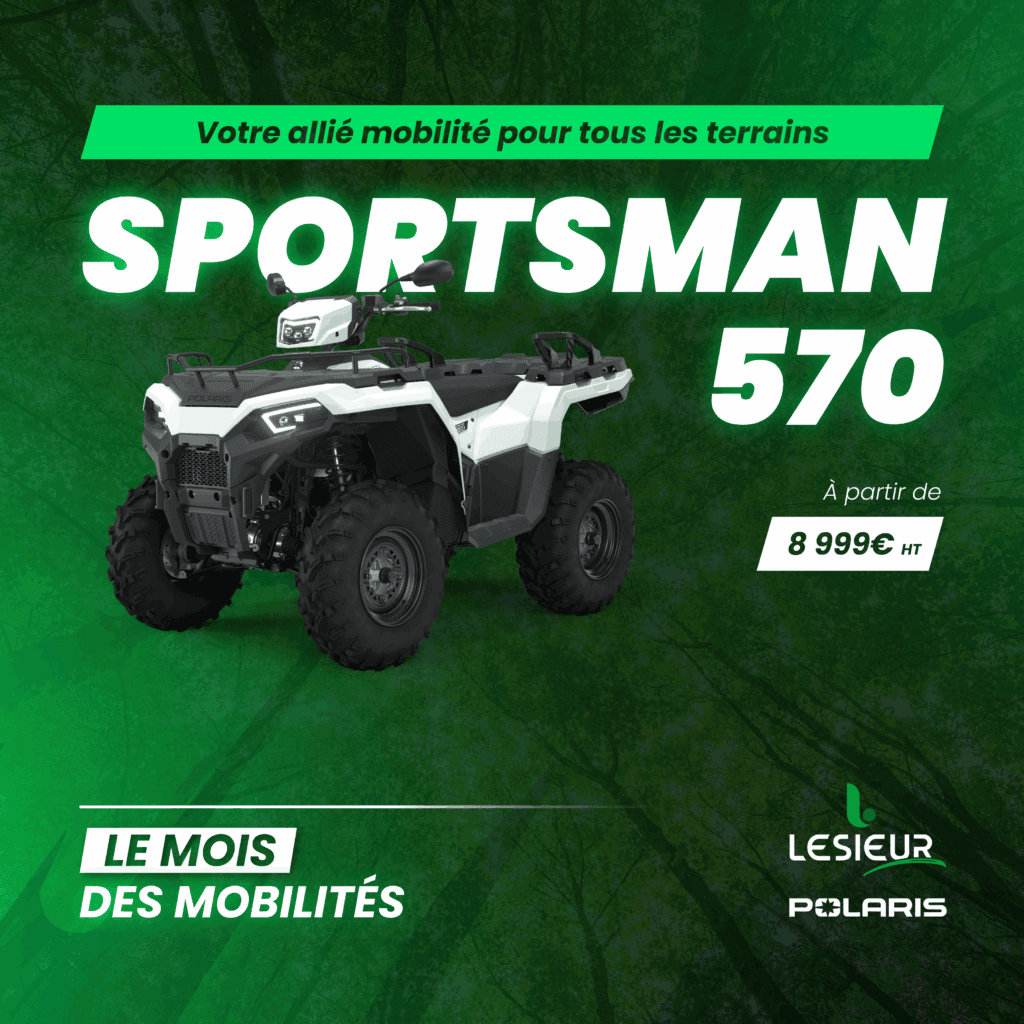 Puissant, fiable et polyvalent, le Polaris Sportsman 570 est conçu pour affronter tous les terrains. Avec sa direction assistée à trois modes, ses pneus renforcés de 25″ et son moteur de 567 cc, il offre confort, stabilité et performance au quotidien. Idéal pour les travaux agricoles comme pour les loisirs en plein air.